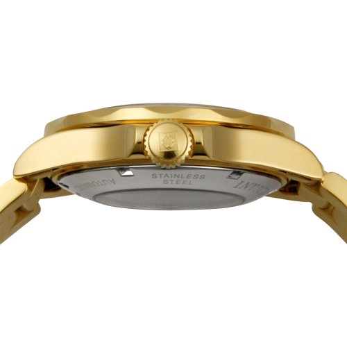 - Gold tone dial with white hour markers; luminous hands; screw down crown; exhibition case back
