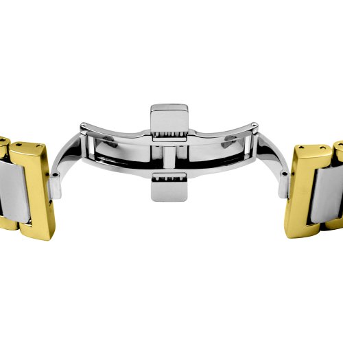 - Quality Japanese Automatic movement; Functions without a battery; Powers automatically with the movement of your arm- Durable mineral crystal; polished two tone stainless steel case and bracelet